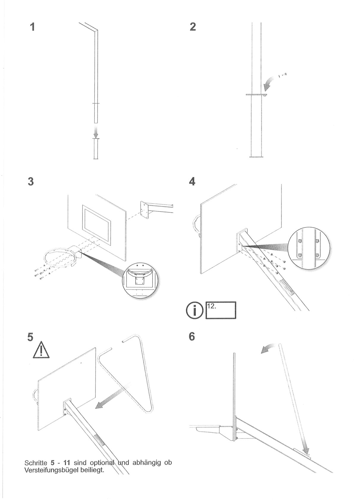 Robuste Basketballanlage für den Außenbereich – GS-geprüft & Made in GermanySie suchen eine langlebige und stabile Basketballanlage für den Außenbereich? Unsere hochwertige Einmast-Basketballanlage aus massivem, gebogenem Stahlrohr (Ø 114 x 5 mm) überzeugt durch Qualität, Sicherheit und Langlebigkeit. Ideal für Schulhöfe, Spielplätze, Vereinsgelände oder öffentliche Sportanlagen. Stabile Konstruktion für intensives Basketballspiel Das feuerverzinkte Stahlrohr ist äußerst widerstandsfähig gegen Witterung und Vandalismus. Der Mast verfügt über eine direkte Anschraubplatte für den Basketballkorb und wird mittels mitgelieferter Bodenhülse sicher einbetoniert – für maximale Stabilität und Sicherheit. Hochwertiges Basketball-Gitterbrett mit Big Duty-KorbDas mitgelieferte feuerverzinkte Gitterbrett in eckiger Form (120 x 90 cm) sorgt für authentisches Basketball-Feeling. Der robuste Big Duty-Korb inklusive stabilem Kettennetz ist perfekt für den dauerhaften Einsatz im Freien geeignet. Die gesamte Anlage ist nach DIN EN 1270 gefertigt und GS-geprüft. Die Anlage erfüllt höchste Qualitätsstandards. Sie erhalten ein Produkt, das nicht nur optisch überzeugt, sondern auch in Sachen Sicherheit und Haltbarkeit Maßstäbe setzt.  Made in Germany – Qualität, auf die Sie sich verlassen können Lieferung inkl. Bodenhülse -> Garantie nur bei fachgerechten Einbau mit Bodenhülse.