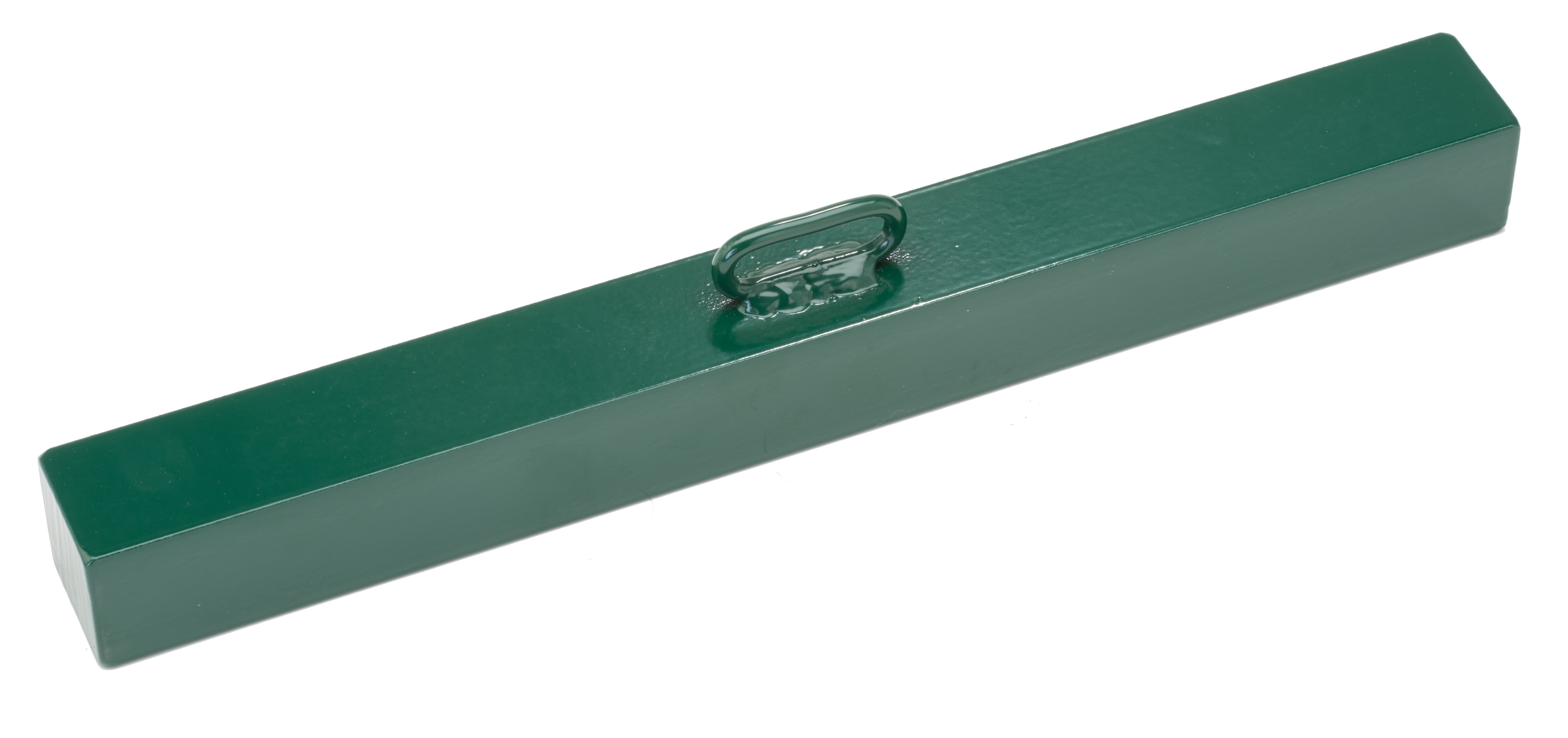 With the tennis net weight, there is no need to fix ground anchors with foundations in the center of the net. A weight of about 5.2 kg ensures that it is sufficiently heavy to keep the net stable even in severe weather conditions.The cast weight made of solid steel tube is painted green. The suspension eye with a height of about 2 cm is perfect for attaching the center strap. Well suited for indoor courts. Dim: 39,5 x 4 x 4 (L x B x H)