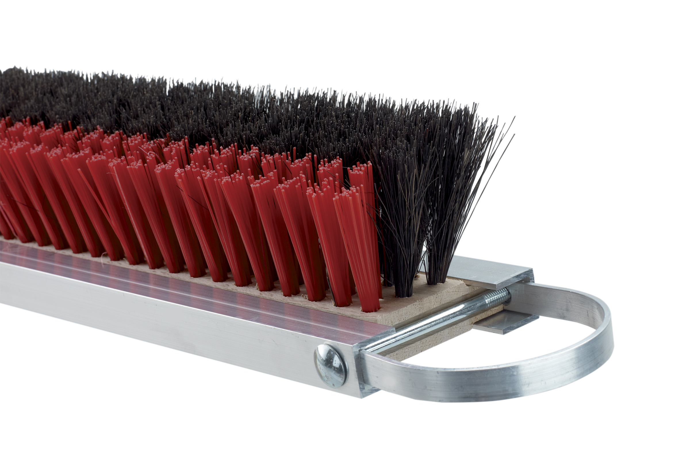 Mit den gleichen Dimensionen und Fertigungseigenschaften, wie der Tennisplatz Abziehbesen Kunststoff oder Arenga ist dieser Besen eine perfekte Kombination zwischen den beiden Materialien. Auch dieser Besen ist 200 cm breit und mit vier auswechselbaren Besenteilen versehen. Exakt besteht der Besen aus zwei Reihen PVC-Belag (rot) und drei Reihen Arenga-Belag (schwarz). Die Kunststoffborsten im vorderen Bereich sollen das Deckenmaterial auflockern und die Arengaborsten im hinteren Bereich verteilen das gelockerte Material gleichmäßig und sauber auf dem Platz.